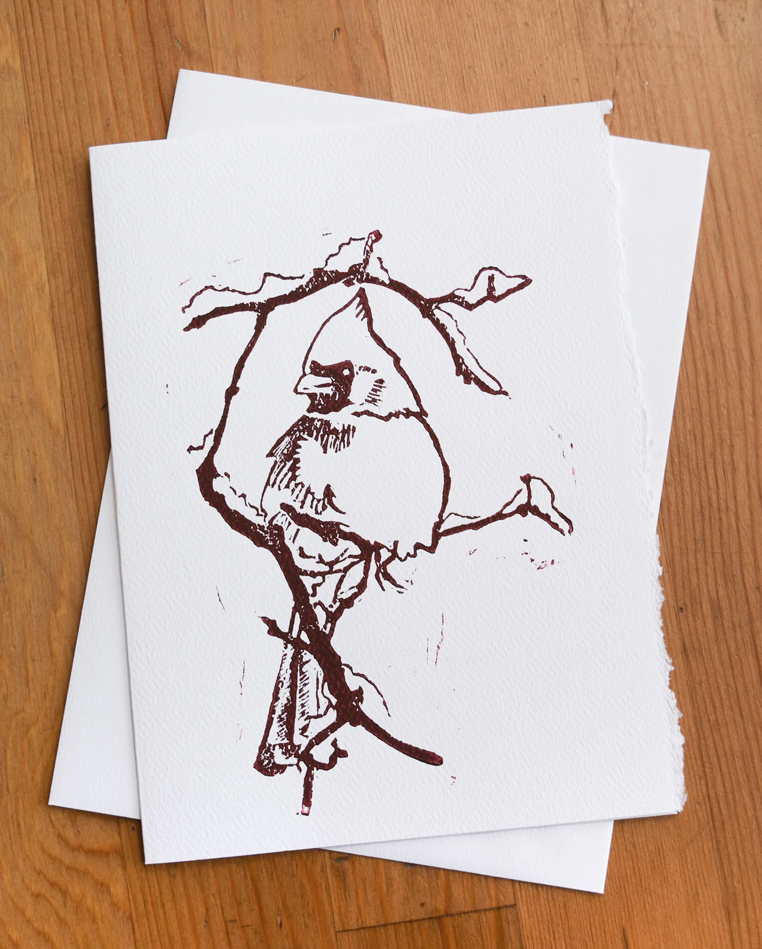 All cards feature hand-pulled prints from hand-carved and one-of a kind linocut blocks. By nature of the hand-pulled process, no two cards are the same and therefore each one of them is a piece of art to be appreciated for their individuality.