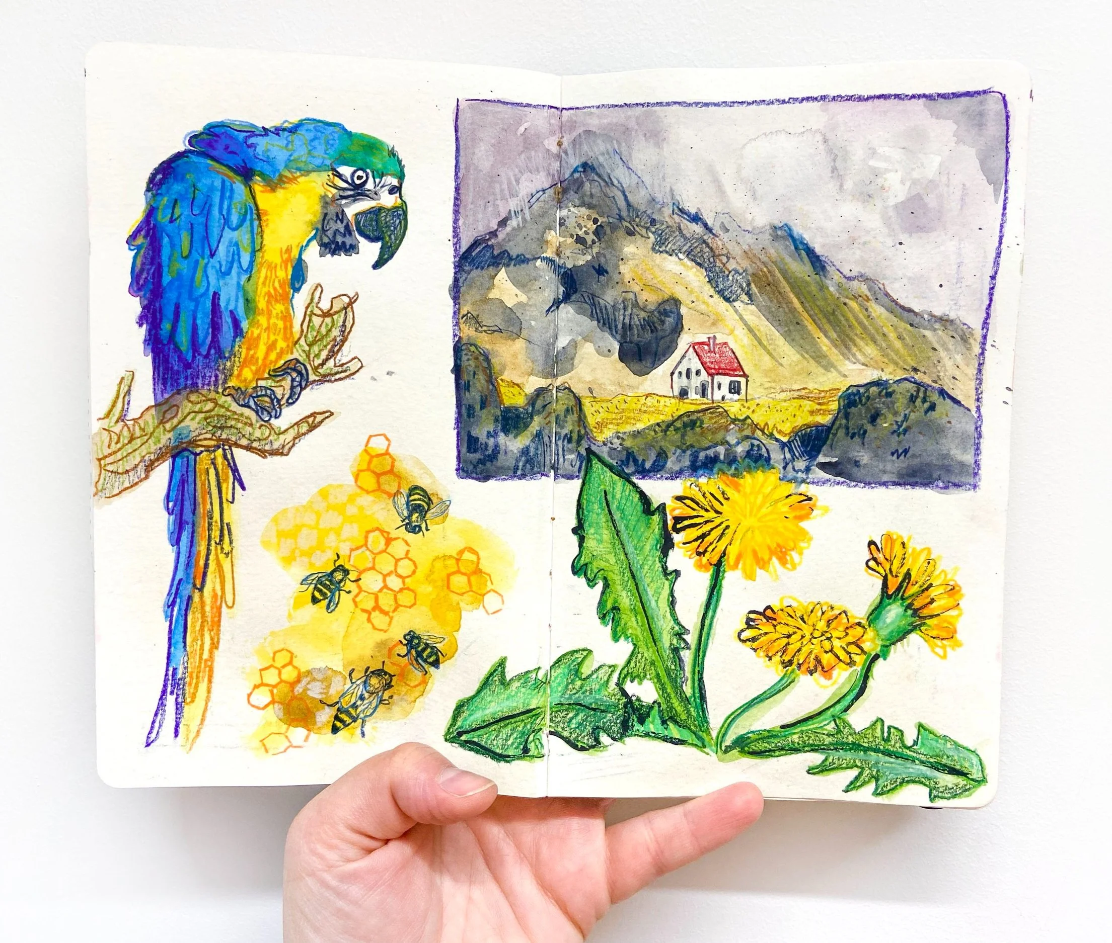 In 2021, I became very interested in exploring different composition techniques. I wanted to make a spread that included a lot of unrelated items and still find a sense of symmetry and balance between them.